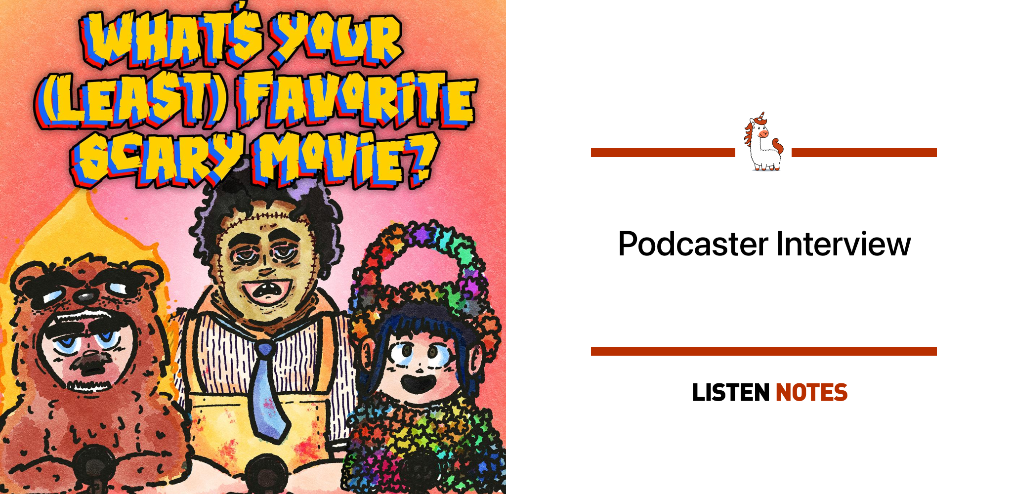 Our show is called What's Your (Least) Favorite Scary Movie?. Each week one person chooses a horror movie they love, but the other hates. As we dive into these films we give our personal ratings and discuss behind the scenes info - all while arguing over who's right and who's wrong. We do this as a celebration of the genre, and to show that horror has a little bit of something for everyone. We also want to encourage others to share their opinions on movies that they feel they may receive backlash for, because we've noticed discussions can get heated over these topics, and we don't want that because on our show we encourage those hot takes!